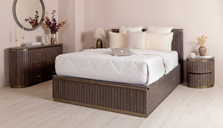 Piano Queen Bed with Hydraulic Lift – Mango Wood, Walnut